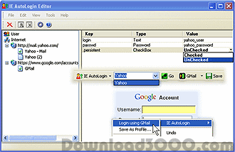 IE AutoLogin is an Internet Explorer Web Password Manager that allows you to log into a website with just one click. It seamlessly integrated with Internet Explorer and can be access from a toolbar that becomes a part of Internet Explorer, HTML page context menu or Internet Explorer main menu. IE AutoLogin Web Password Manager saves all login information from web form as your profile to protected location on your computer and easily completes and submits login form when you next time select this profile. IE AutoLogin allows import of Internet Explorer AutoComplete usernames and passwords.